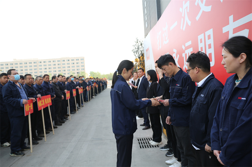 为切实增强全体一线员工质量安全工作的使命感、紧迫感和责任感,努力开创公司高质量发展新局面,2023年4月19日,河南开元KY重型机械股份有限公司召开2023年一季度质量安全奖励大会,执行总裁谢保华,质量安环中心总监钮鹏超,制造管理中心副总监代艳云、孙朋,以及生产系统各部门负责人和全体一线员工参加会议。会议由质量安环中心副总监王爽主持。
