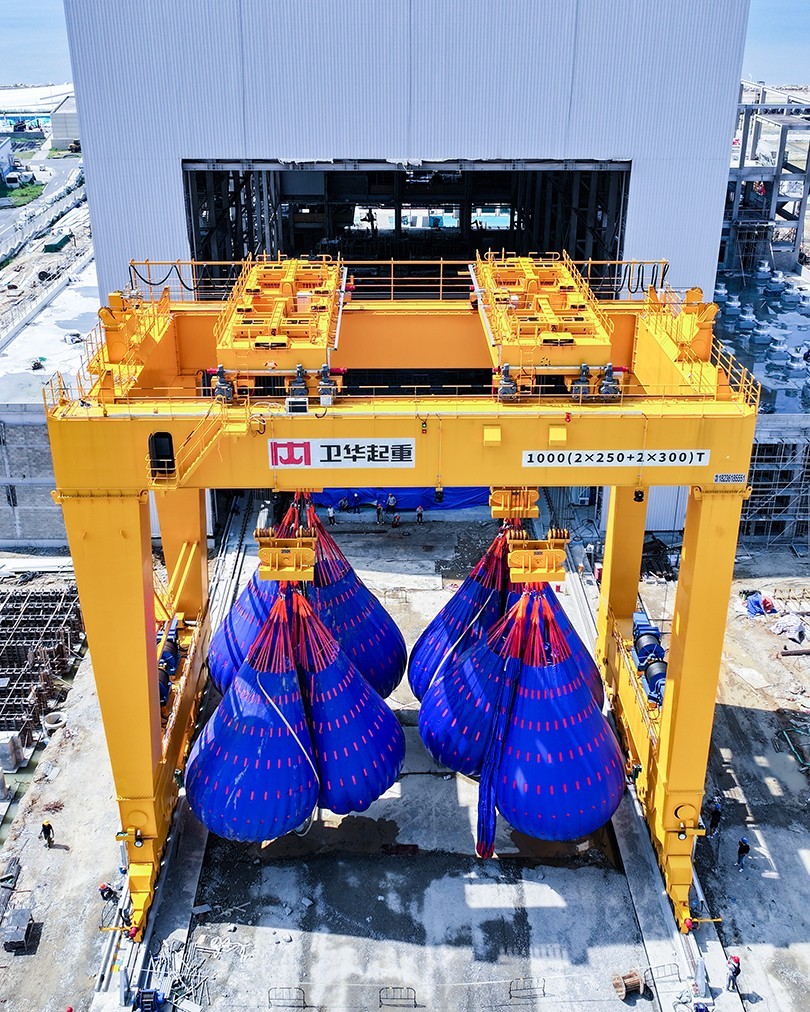 近日,在福建省福清市江阴港国家级海上风电研究与试验检测基地,河南开元KY1000t双主梁门式起重机顺利完成重载实验并投入运营。