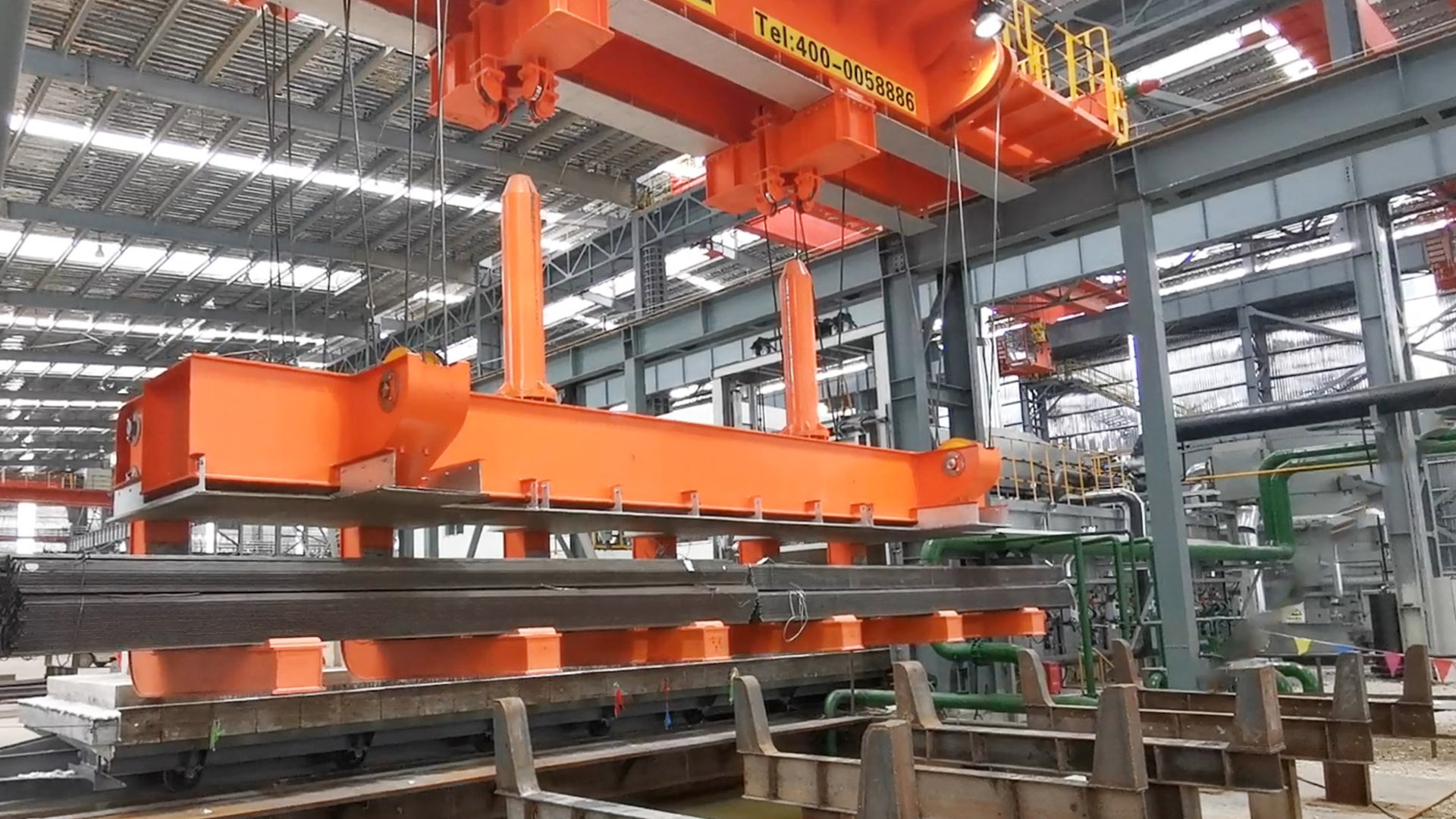开元KY智能淬火起重机主要用于高温型材或棒材的吊装并进行淬火工艺。