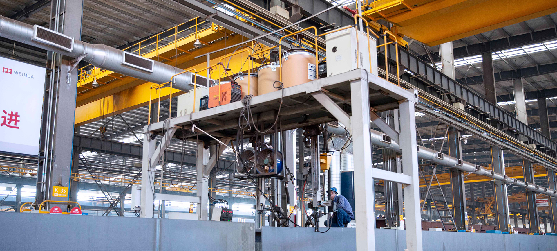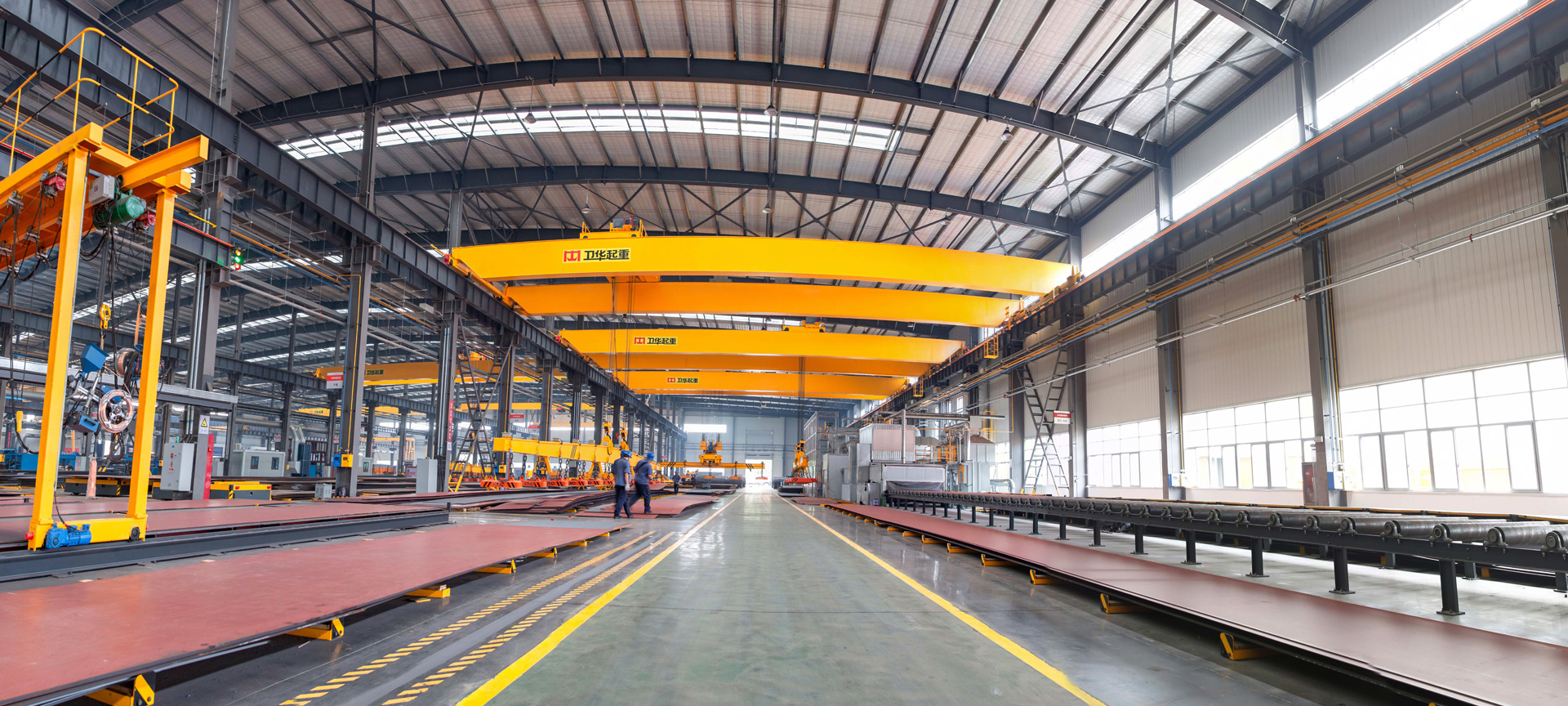 起重机产品焊接过程采用柔性数字化电永磁吊具及控制系统, 吊运安全可靠性高。为提升焊接过程质量,结合当前5G通讯技术,广泛在起重机主梁、端梁、台车等构件中应用机器人焊接技术,有效提升焊接效率,确保了起重机整体制造质量。