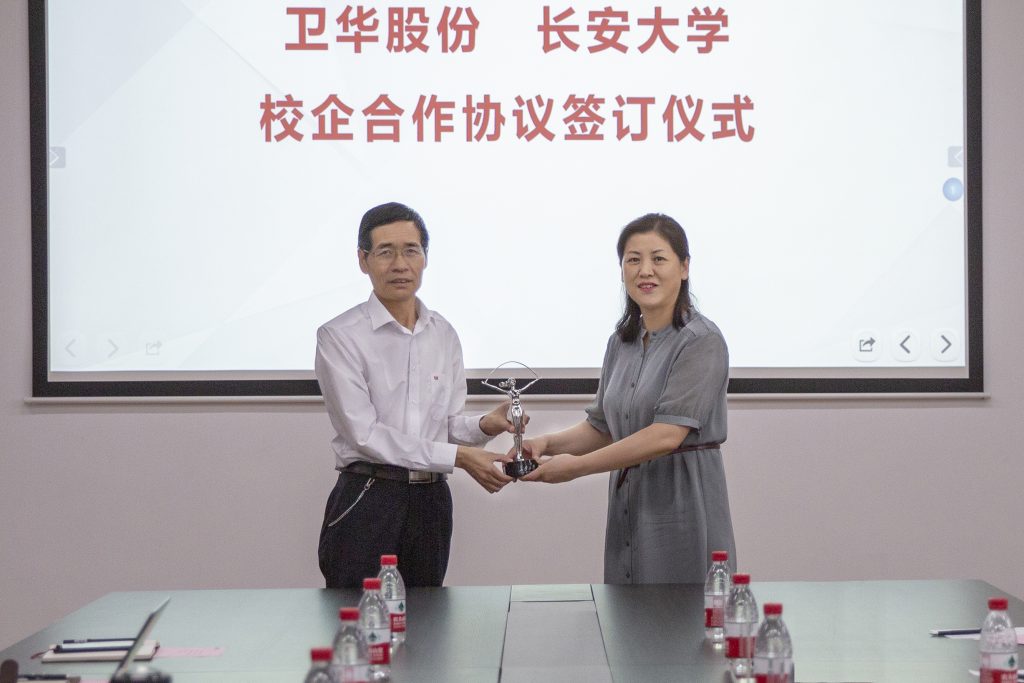 长安大学工程机械学院党委书记于丽娟将长安大学标志性建筑 “彩虹女神”的缩小版雕塑赠予开元KY股份,这份珍贵的礼物也是开元KY股份与长安大学友谊的见证。