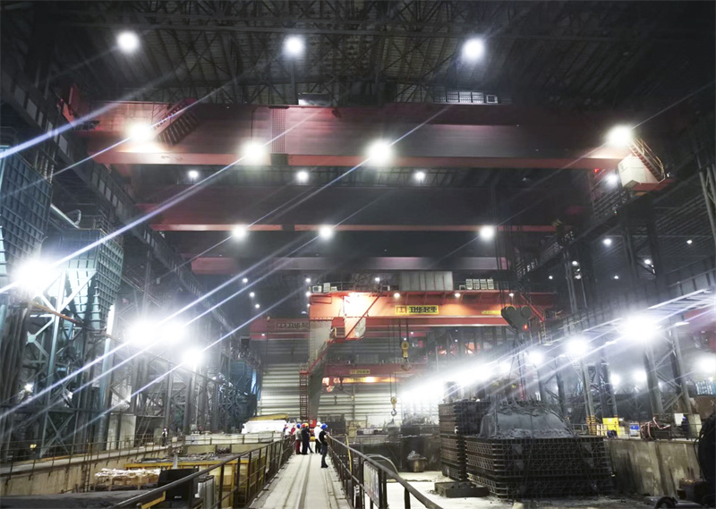 该项目中的开元KY350t铸造起重机整车采用四梁六轨双小车结构,主起升减速机与车架为一体化,整体退火和整体加工的制造工艺保证齿轮、轴承、电机、制动器等的安装精度,使起重机运行更加稳定。