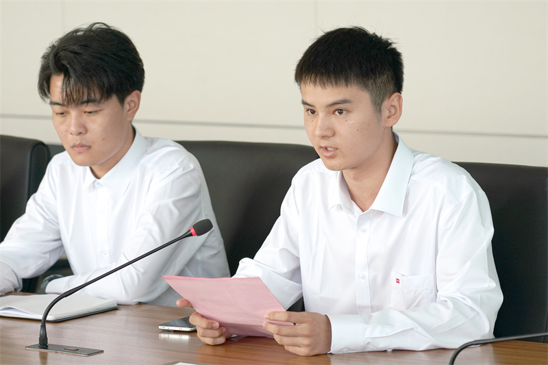 新入职员工代表崔洪博对领导们给予的关怀与重视表示感谢,并结合岗位职责、立足自身成长畅谈了入职以来的切身感受。作为开元KY新的一员,他代表全体新员工对后续工作开展做出承诺:要争当先行者,立足公司远大的发展前景树立个人目标,对标优秀员工学习其先进事迹,把持之以恒的学习提升作为职业生涯的基本素养,做好、作细、做实工作中的每一件事情,在平凡的岗位上创造出优秀的业绩。