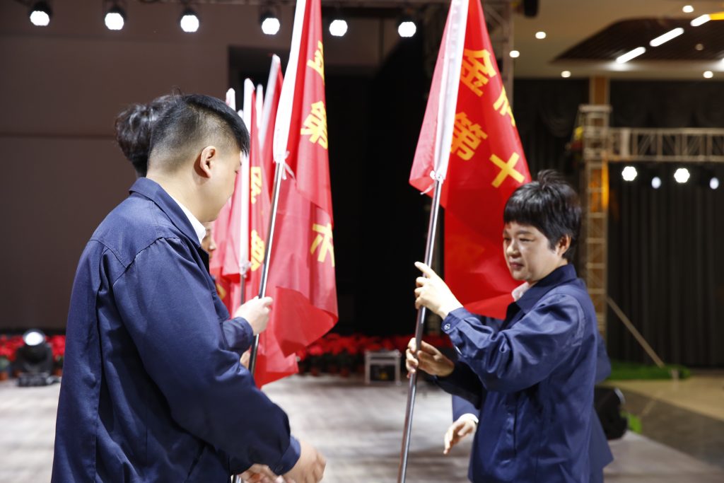 此次训练营共分为12小组,常务副总经理谢保华向训练营分别授营旗和组旗,这十三面责任重大、寓意深远的旗帜,凝聚着班组长求知的决心,凝结着开元KY人奋进的力量。